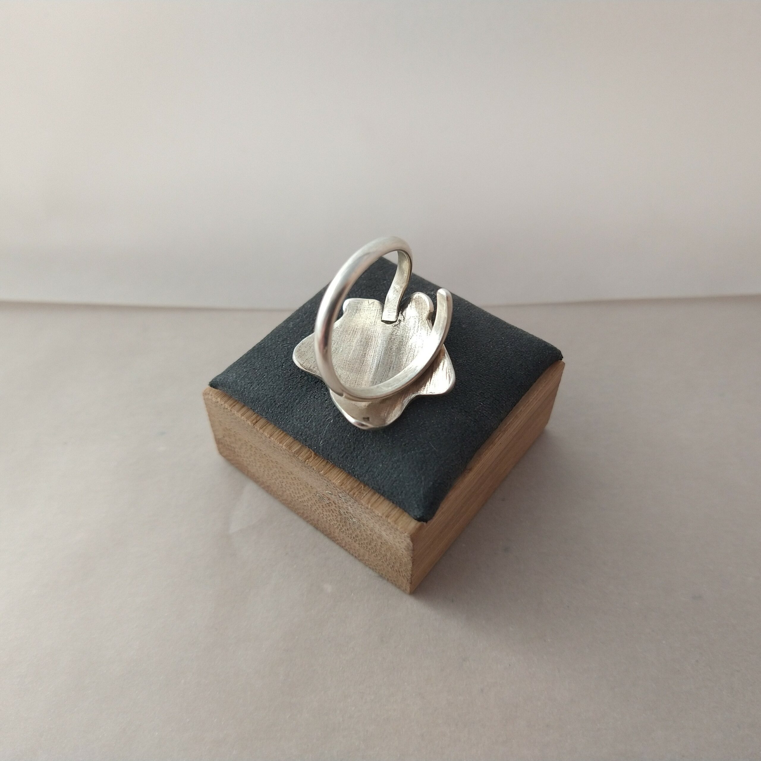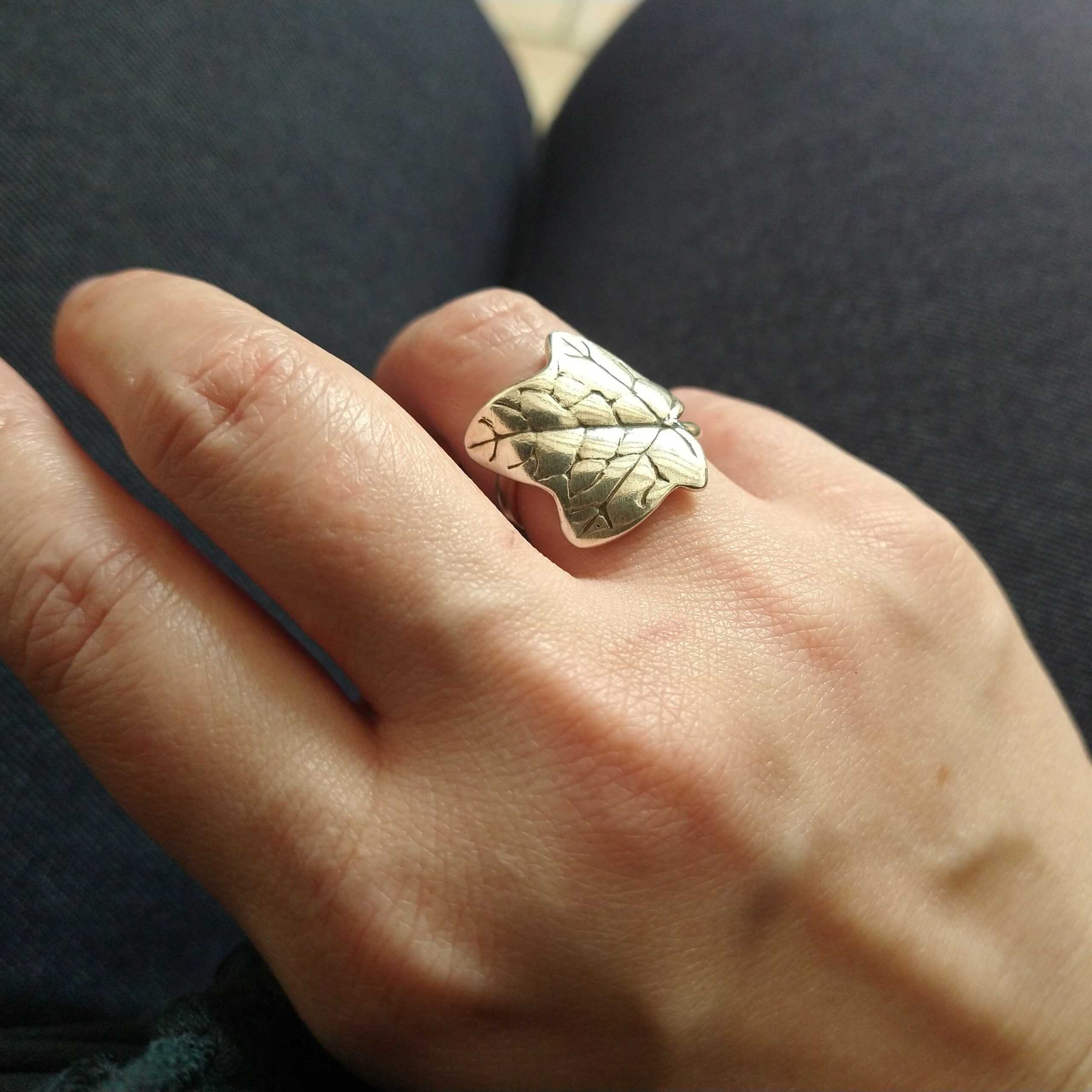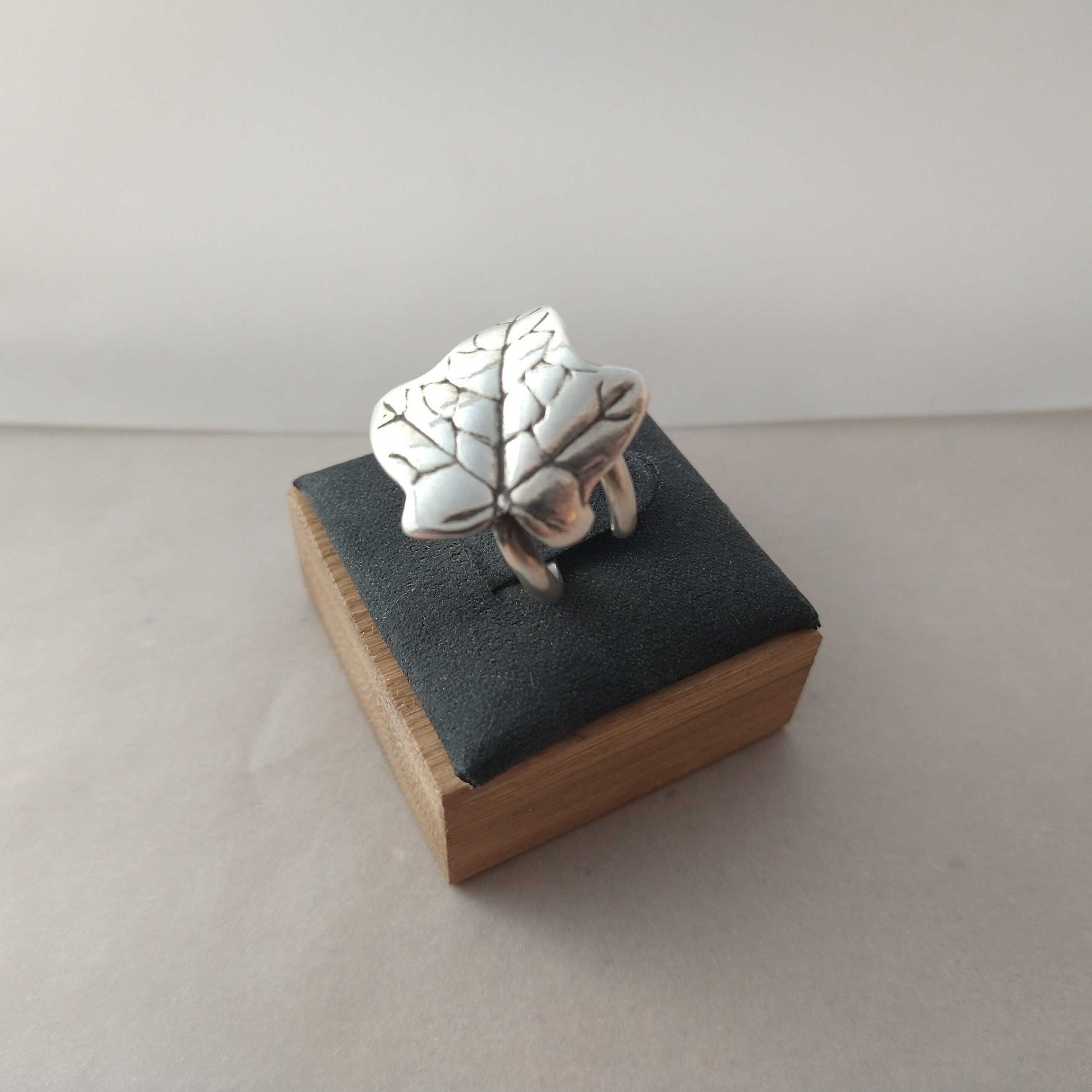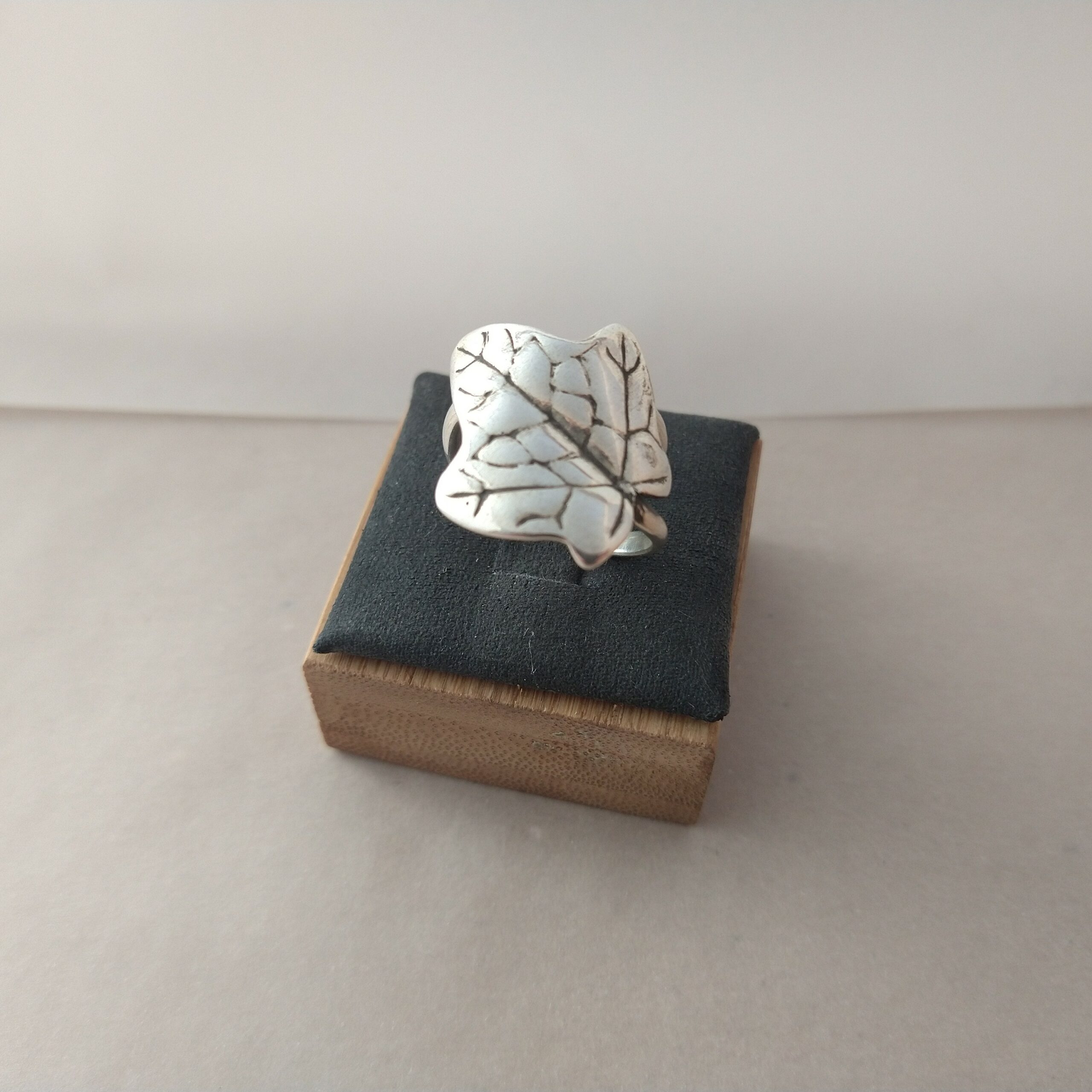 Bague réglable en argent 925 massif à fonds noircis, ornée d’une feuille de lierre.