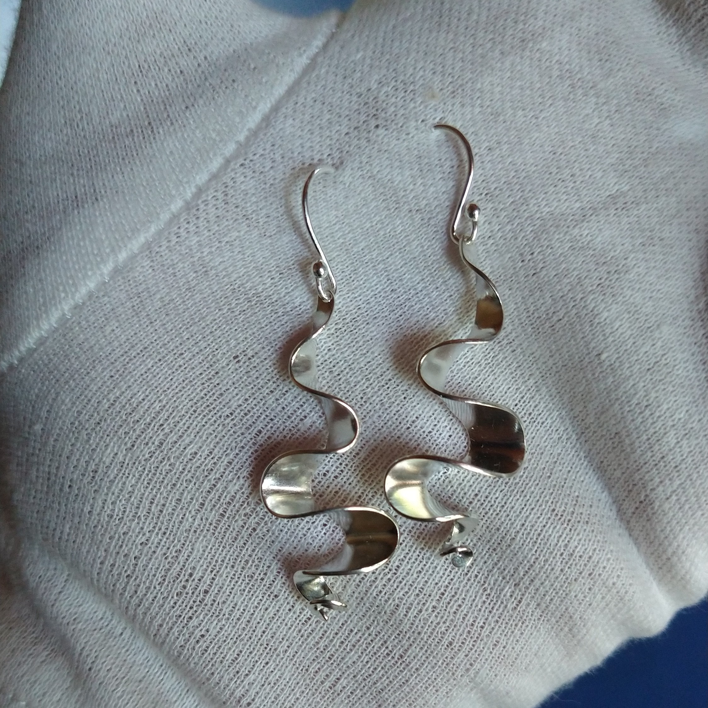 Avez-vous déjà vu une algue flottant au gré des courants ? C’est beau… Alors j’ai tenté de refléter cette beauté, j’ai fait de mon mieux. Voici les boucles d’oreilles Ulva, de fines bandes en argent 925 mises en forme avec amour.